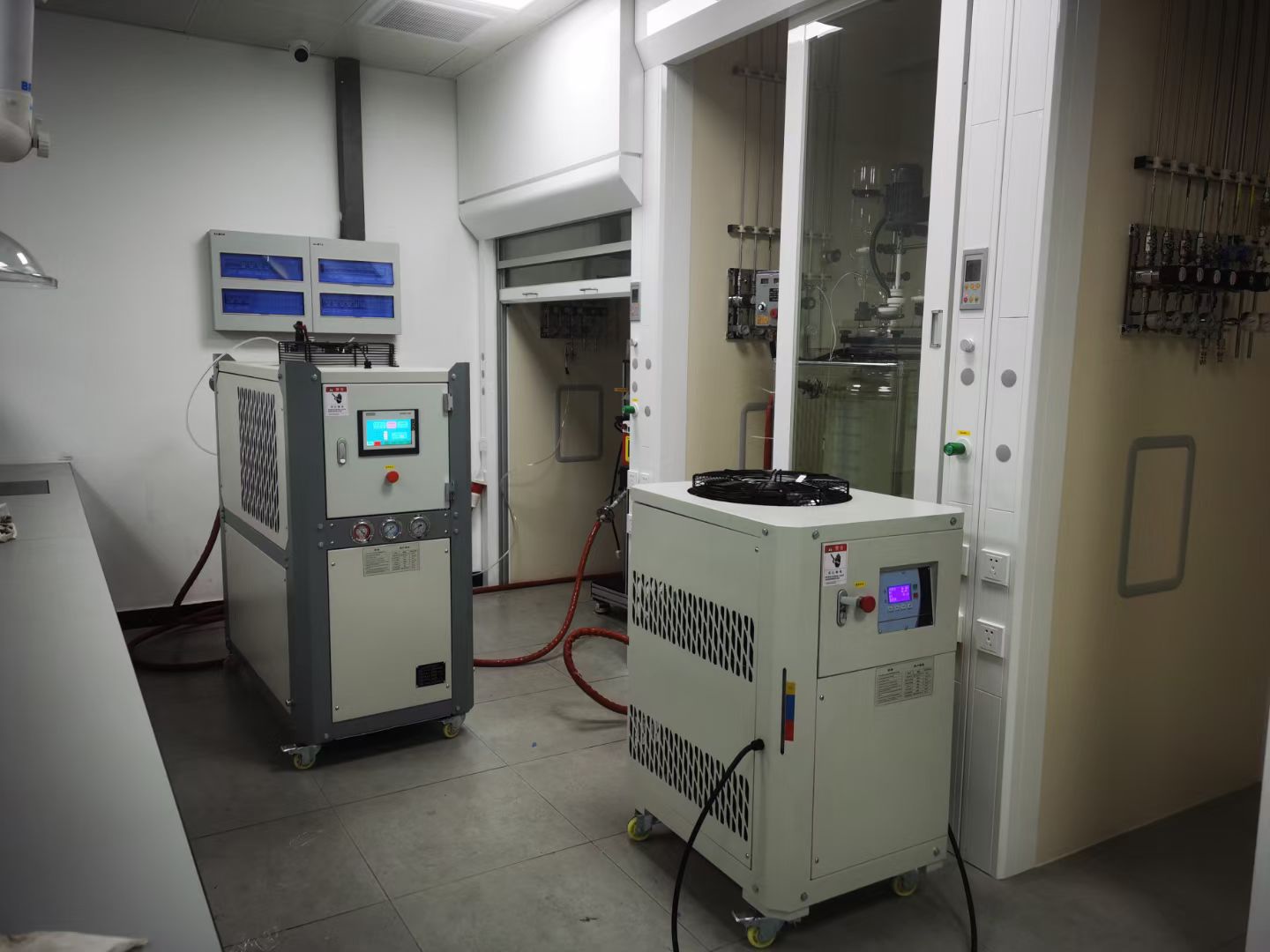 防爆冷热一体机应用于对玻璃反应釜、金属反应釜、生物反应器进行升降温、恒温控制,尤其适合在反应过程中有需加热/放热 过程控制。分两个控温部份(制冷和加热),也称冷热一体机,制冷制热一体机,冰热一体机等。我们知道在许多的化学反应过程中都伴随有大量的吸热或是放热现象,而温度是生产过程中一项重要的工艺参数,采用大流量耐高温油泵,性能可靠、质量稳定,可防止轴封漏油等现象发生,并可减小导热油进出口温差,准确地控制反应釜温度不仅可以满足物料反应温度条件,还对产品的质量以及生产效率有着直接的影响。反应釜加热冷却控温机-反应釜冷热一体机是制冷和加热集于一体的温度控制机,由两套系统组成,两块电脑PC板,各自控制相应的系统,根据工艺需求,自动调节加热或是制冷.是由导热油循环泵、加热管、冷却换热器、制冷系统、温度控制系统、管路及机架构成的。导热油在机组的热媒体管路以及反应釜夹套或盘管之间进行流动,循环泵浦、导热油管路、加热装置以及冷却装置构成了热媒体的基本回路。
